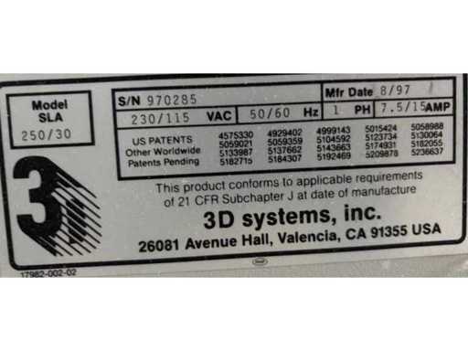 Imprimantă 3D 3D Systems SLA 250/30 1997