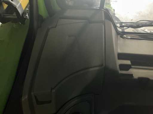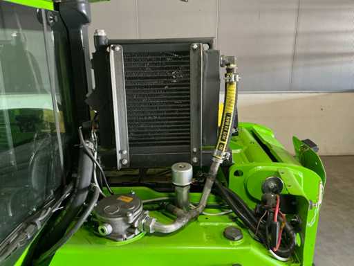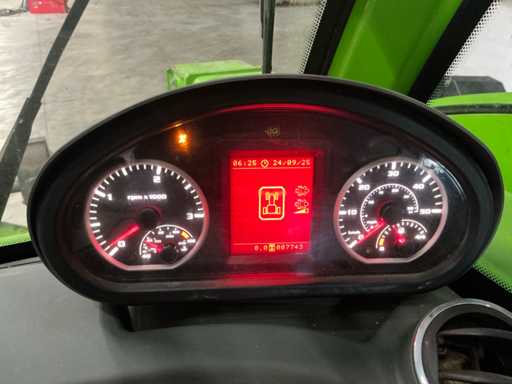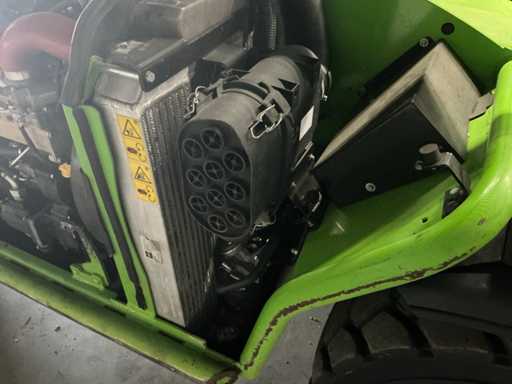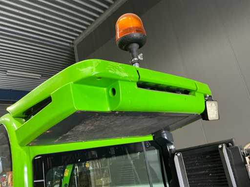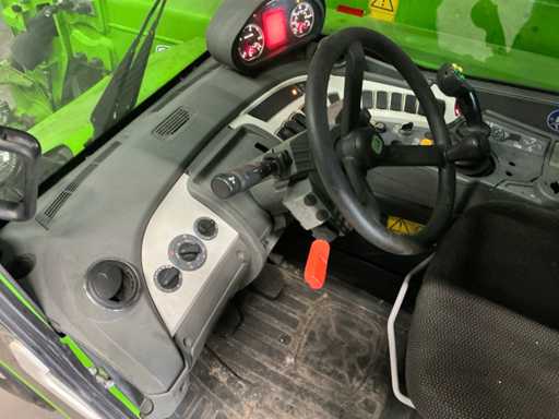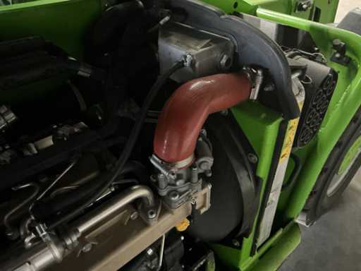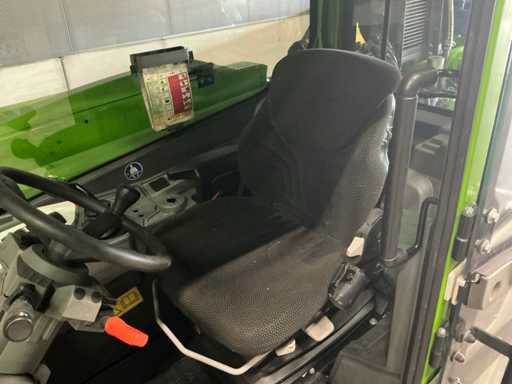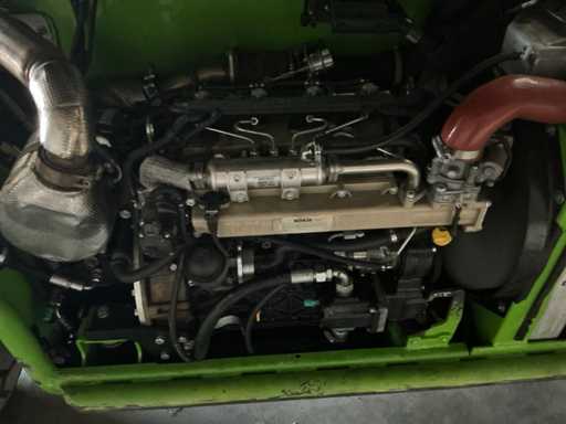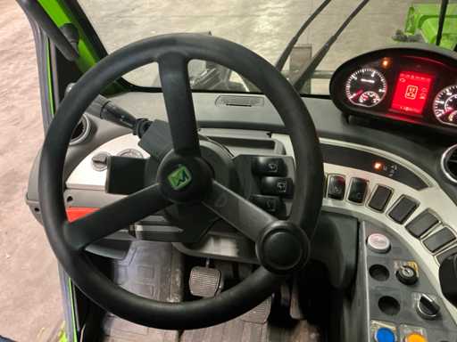 Echipat cu: control joystick, acoperiș panoramic, aer condiționat, 4Ws, 4Wd, funcție auxiliară, ștergătoare de parbriz față și spate, lumini de lucru cu LED, furci pentru paleți, cuplare rapidă hidraulică, bară de remorcare, baliză, comutator de masă, documentație originală, transmisie hidrostatică cu tracțiune integrală permanentă, motor KOHLER cu patru cilindri KDI2504TCR 2.500cc, viteză maximă de 40 km/h, pompă hidraulică cu angrenaje, debit de 94 l/min, presiune 210 bar,
