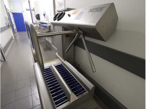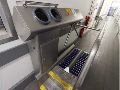 Echipat cu curățare a tălpii și dezinfectare a mâinilor, inclusiv gard și turnichet