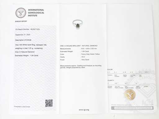 Inel de aur alb de 14 nute cu diamant natural 1,04 ct