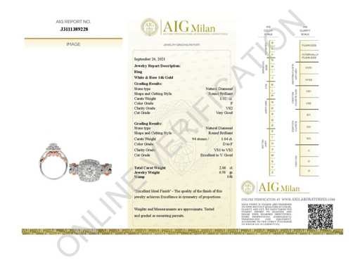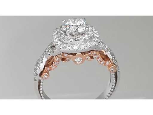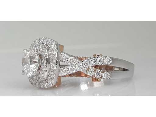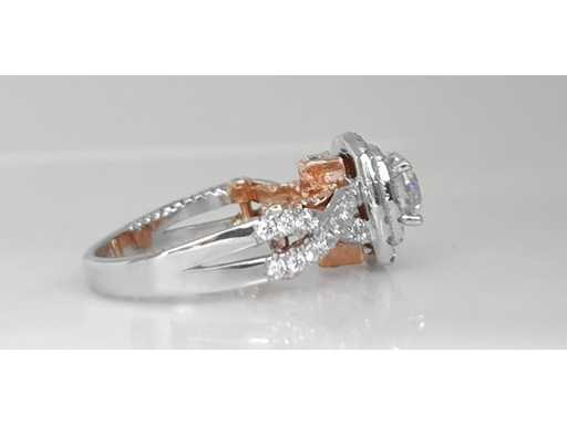 Inel de diamant natural de lux, 2,06 carate, din aur alb și roz de 14k, greutate totală 6,91 gr., cu un diamant natural natural strălucitor F / VS2 central de 1,02 carate și 94 de diamante naturale rotunde strălucitoare D-F / VS1-VS2 de 1,04 carate. Certificat de AIG Laboratoire, unul dintre cele mai mari institute internaționale pentru certificarea și evaluarea diamantelor și pietrelor prețioase. Pentru mai multe informații, vedeți certificatul. Bijuteriile, în realitate, sunt mai bune decât fotografiile. Preț estimat de la comerciant: € 18.950. - O bijuterie nouă.