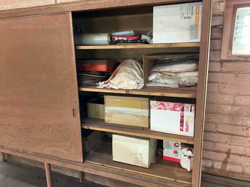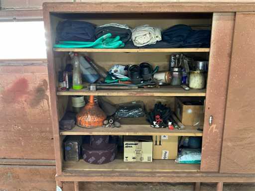 Constând dintr-un dulap de perete cu radio și unelte, dulap cu ușă glisantă cu conținut, dulap cu ușă glisantă de dimensiune (LXBXH) 500x2400x1700 mm, comodă cu 4 sertare, cârpele de curățare