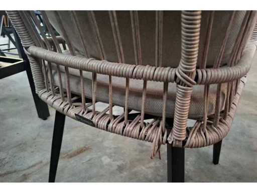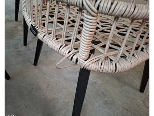 Scaunul de grădină este acoperit cu frânghie de plastic, care este foarte flexibilă, rezistentă și rezistentă la intemperii. Datorită flexibilității frânghiei, aceasta va susține bine spatele și va căpăta forma naturală a spatelui. Vă rugăm să rețineți: frânghia se slăbește la mai multe scaune. Inclusiv pernele pentru șezut și spătar.