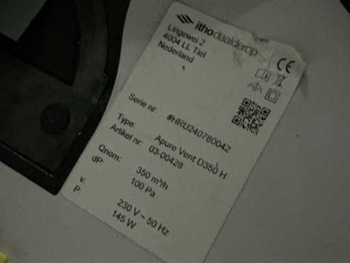 Itho daalderop HRU/Apure Vent D 350H Heat recovery unit