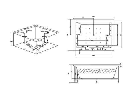 Tip: RT1806T. Model: Semi-detașat. Dimensiune: 1800x1450x740mm. Culoare: Alb lucios. Jeturi de apă: 6 jeturi mari și 10 mici, 16 jeturi cu bule de aer. Echipat cu: Cadru din oțel galvanizat - Pompă de aer (0,25 kW) - Pompă de apă (0,74 kW) - Încălzitor (1,5 kW) - Panou de control - Generator de ozon - Robinet termostatic - Duș manual - Circulație de apă - Iluminat LED subacvatic (2 piese) - 2 perne - Robinet de cascadă. Caracteristici speciale: Poate fi plasat atât pe partea stângă, cât și pe partea dreaptă.