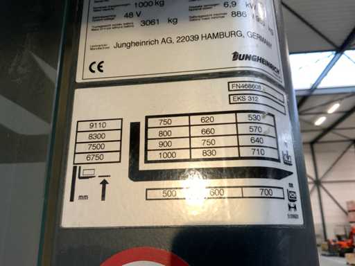 48V; înălțimea ridicată de la podea; 825mm; înălțime totală de ridicare 9110mm; cu pată roșie; inclusiv încărcător de baterii;