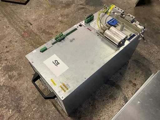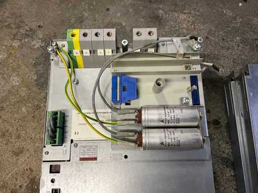 Modul convertor de putere pentru tipografie KBA, modulul de acționare KBA/Loher, rețea 3~ 400–480 V ±10%, 50–60 Hz, curent de intrare aprox. 120 A, legătură DC până la aproximativ 670 V, curent de ieșire aprox. 140 A. Unitate de alimentare glisantă cu condensatori integrați și benzi de terminale/prize, fabricată în Germania, "integrată prin KBA". Piesă folosită de la demontarea unei prese offset KBA alimentate cu foaie, în stare optică bună;