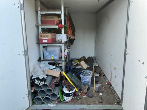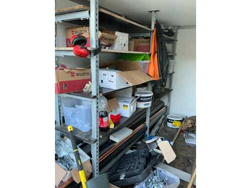 Containing some miscellaneous fasteners, copper pipes, PVC drain pipes, garden tools and a sledgehammer