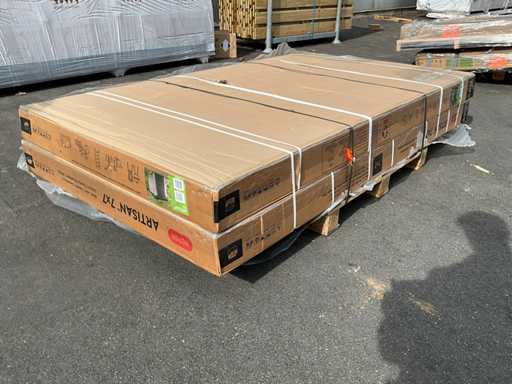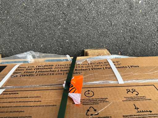 rășină (polipropilenă) cu perete dublu cu aspect de lemn DUOTECH™ și armătură metalică; dimensiuni interne aprox. 201 × 201 × 219,8 cm; uși duble, 6 ferestre și ventilație integrată; fără întreținere, rezistent la intemperii și UV; încărcătura maximă de zăpadă aproximativ 200 kg/m²; capacitate aprox. 8,4 m³; acoperiș fronton;