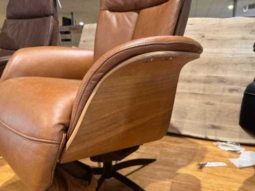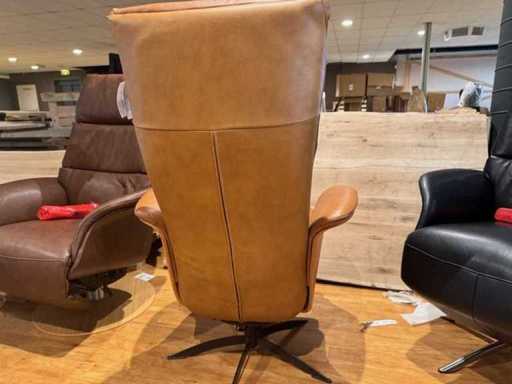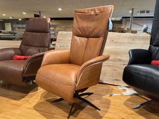 Fotoliu relaxat - piele coniac - reglabil electric - picior negru
