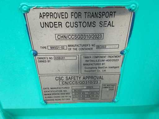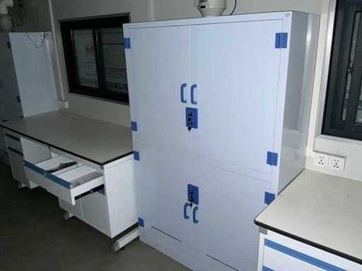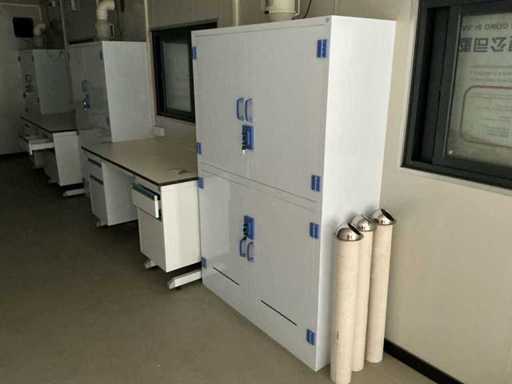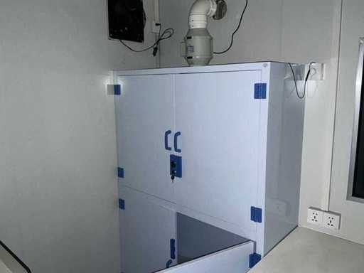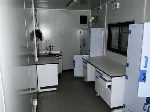 • Tavan și pereți izolați: panouri sandwich din lână de piatră de 50 mm • Pardoseală: 2 mm placaj de podea din PVC • Ușă de securitate la intrare: 1200 x 2100 mm • 3 ferestre duble vitrate cu film rezistent la UV • Aer condiționat (2 hp, model de perete cu invertor) • Boiler electric (8500 W, 30-55 °C) • Ventilator de evacuare (300 x 300 mm) • Mese de laborator (cadru din oțel, blat de lucru din rășină fenolică rezistentă la substanțe chimice) • Dulap de medicamente din PP (polipropilenă rezistentă la substanțe chimice, 1200 x 450 x 1800 mm) • chiuvetă PP cu robinetă mixeră, panouri de scule, baie de ochi de urgență• Sistem electric complet: cutie de contor, iluminat, iluminat de urgență, detectoare de fum • Instalați conducte de apă și scurgere,