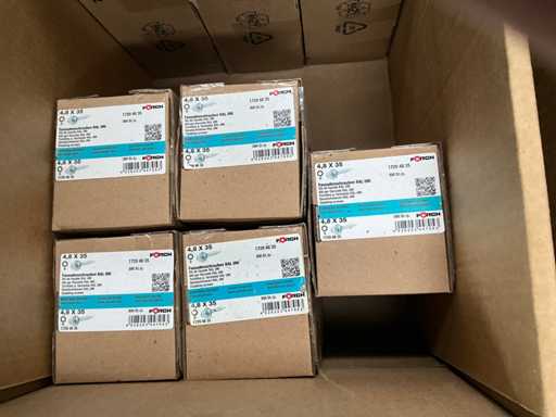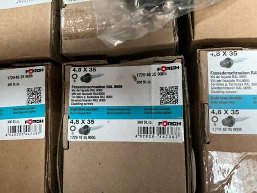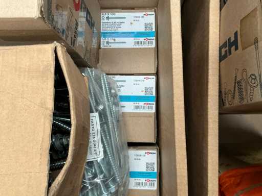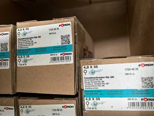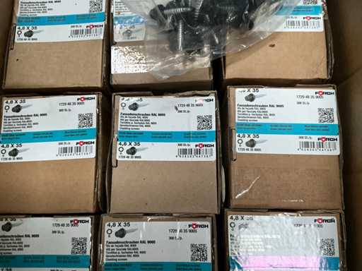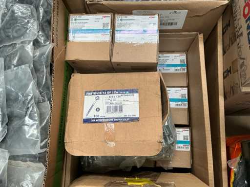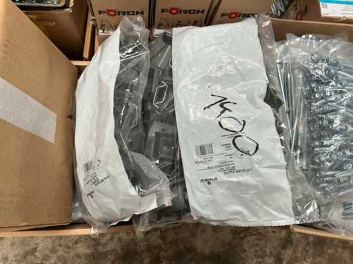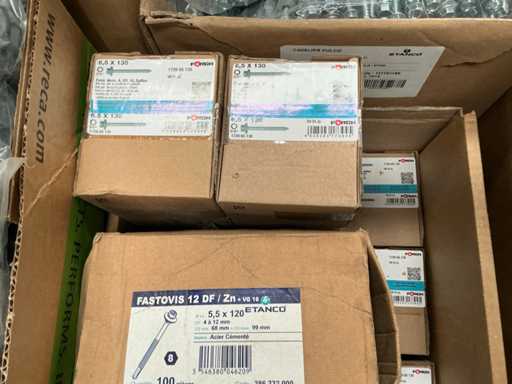 Including Forch, Fastovis, Joriside, Etanco including batch of various cover plates 3/8x19, self-tapping screws Fastovis 12DF, screws Forch including type 6.5x130, 4.8x35,.., various sealing plates Cavalier Vulco ondatherm 101, wood screws Fasto 233 6.5x200
