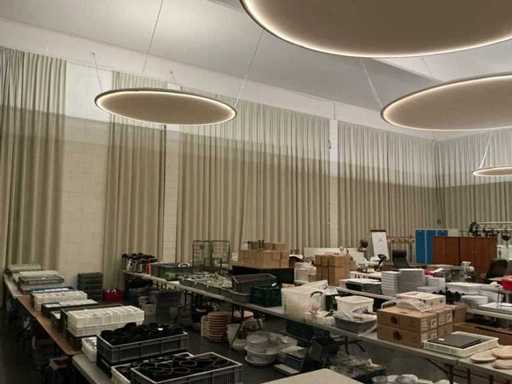 Very large quantity of running meter curtains. Can be used in large spaces of at least 8 meters high. Or to cut and use as a textile fabric. Fire retardant.
