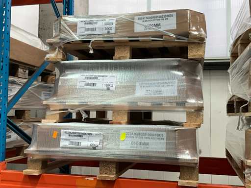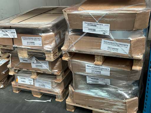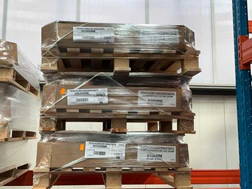 Inclusiv POLYFLEX, PROCITE, PET, TRYCITE, în diferiți microni, inclusiv 20, 29, 32, 59, 75, 96, 100 și în diferite lățimi și lungimi de 100 mm, 180 mm, 240 mm, 175 mm, 80 mm, 200 mm, așezat pe aproximativ 52 de palete în rafturi pentru paleți, livrare conform instrucțiunilor