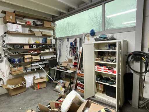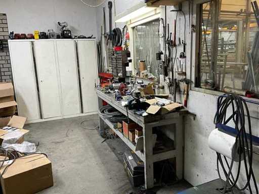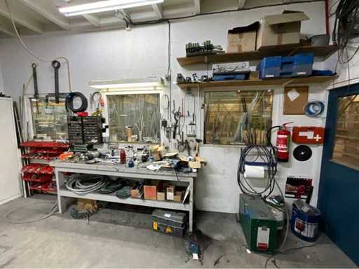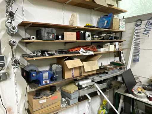 Întregul conținut al atelierului, inclusiv mese de lucru, dulapuri de dosare, unelte, motoare electrice, pompe, componente electrice și pneumatice.