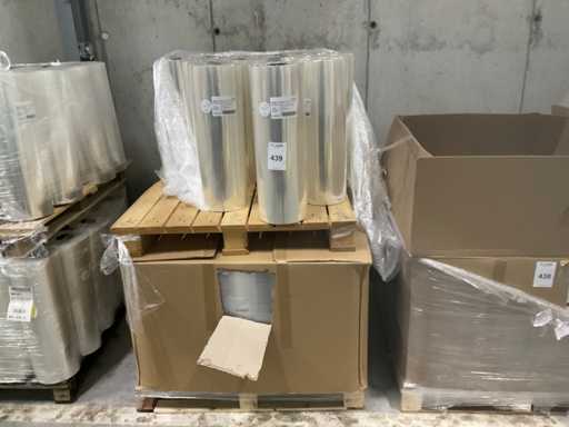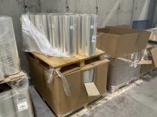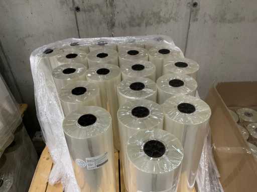 2 paleți, aprox. 50 role, folie transparentă rOPP25, 1000m x 60 cm pe rolă, inclusiv paleți