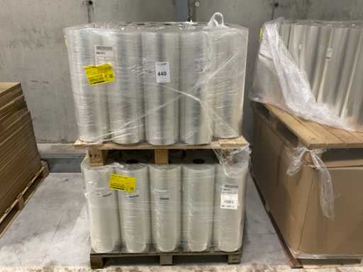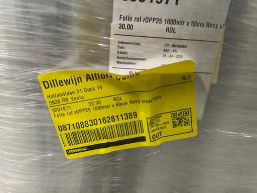 2 paleți, aprox. 60 role, folie transparentă rOPP25, 1000m x 60 cm pe rolă, inclusiv paleți