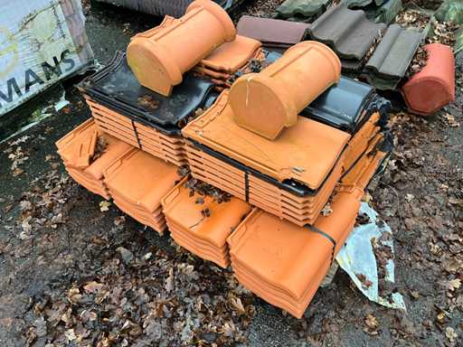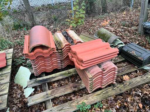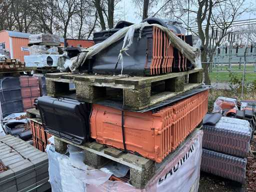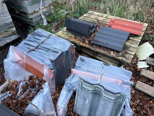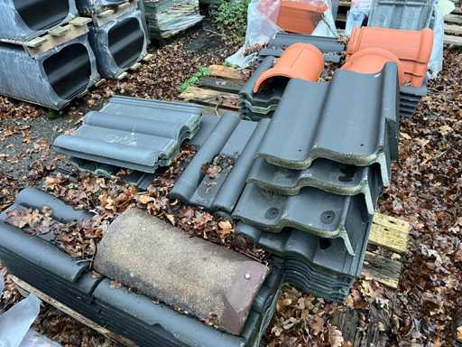 Lot de țigle; Culori: negru/roșu; Unghi și plat; Aproximativ 25 de paleți