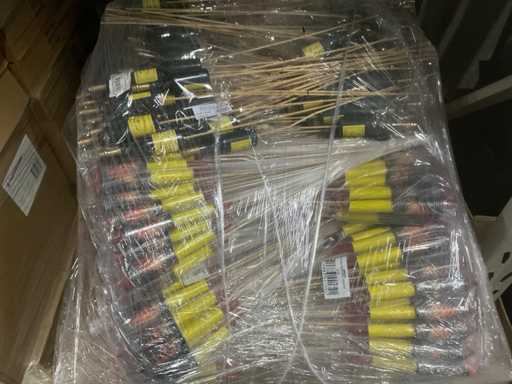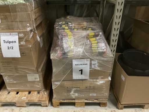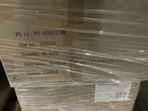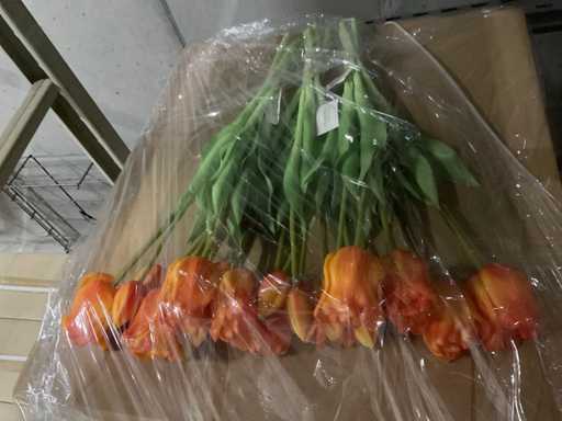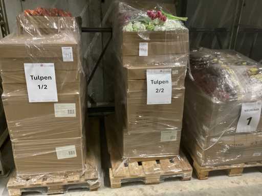 3 paleți, 1 cu târnăcoape și 2 cu diferite culori de lalele în ciorchine (flori artificiale), inclusiv paleți