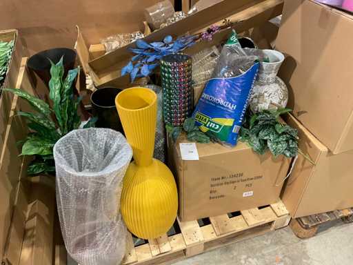 Constând din ghivece, vaze și plante artificiale și alte materiale de decorare. Conținutul pe 2 paleți și cutii.