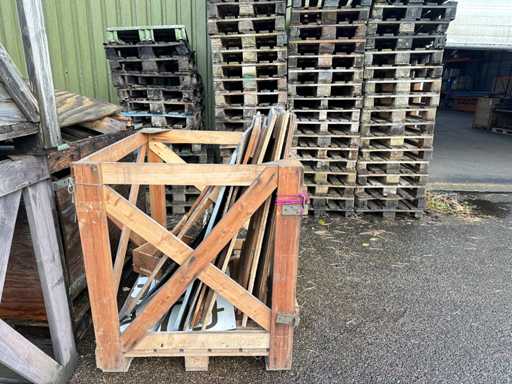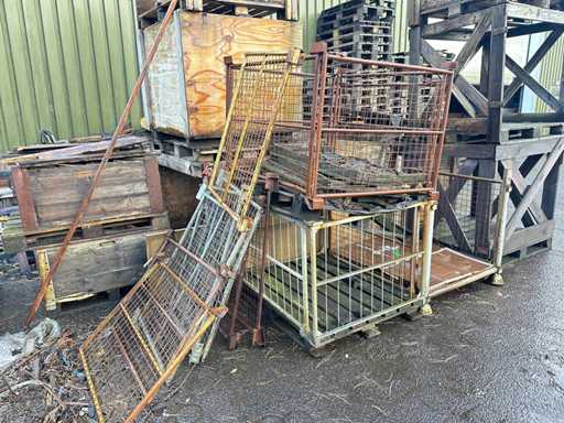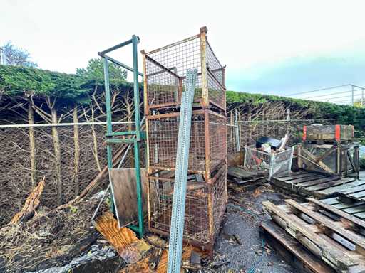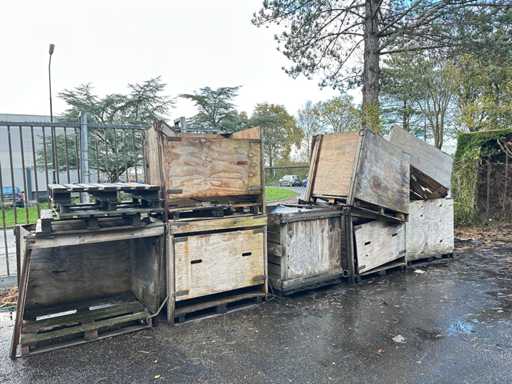 Acest lot constă dintr-un lot de paleți, lăzi de transport din lemn, cuști din plasă metalică cu conținut, profile metalice și resturi de lemn.