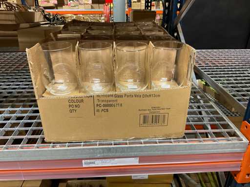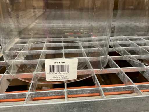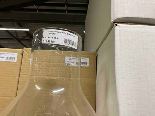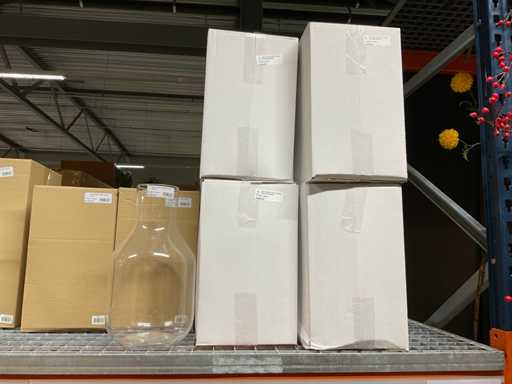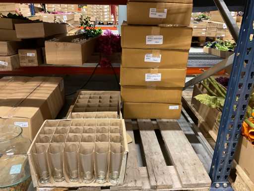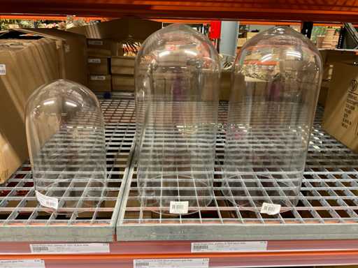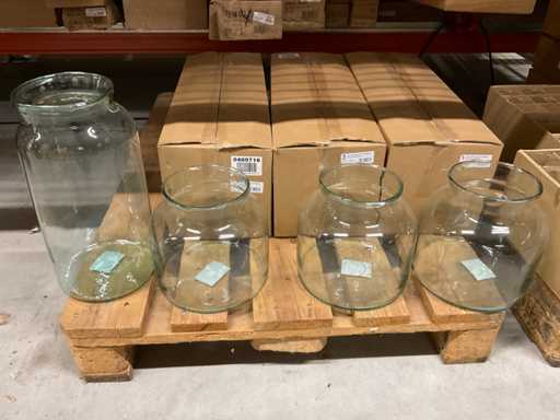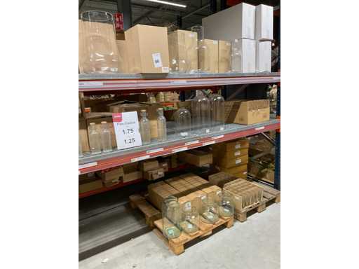 Conținutul secțiunii de rafturi pentru paleți constând din diferite modele și dimensiuni de vaze de sticlă și borcane clopote