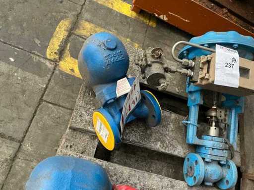 Este o supapă de control pneumatică, motor cu angrenaj și 2 separatoare de condensat cu abur Spirax.