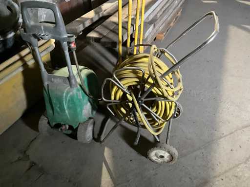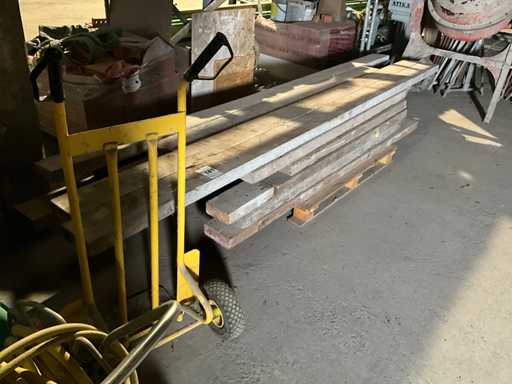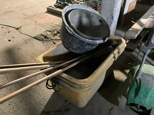 Constă dintr-o paletă cu aproximativ 24 de grinzi de lemn cu lungimi între 2-4 metri, +2x înfășurător cu furtun de grădină, + cărucior de transport, + 4x cadă de zidar, + aproximativ 4x perii și lopeți
