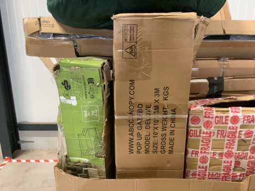 Aceasta se referă la un lot de produse returnate de la un mare retailer online. Lotul este format din diverse categorii de produse, cum ar fi corturi pentru petreceri și mobilier de grădină. Necontrolat: operațiune necunoscută (amestec de