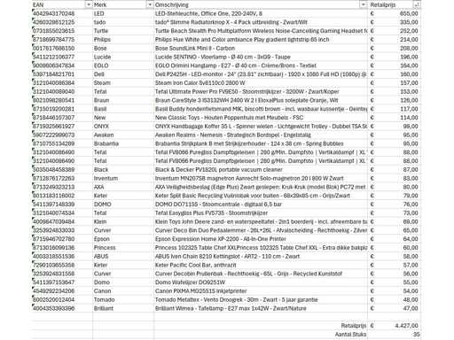 Este vorba despre un lot de produse returnate cu brandul A de la un mare retailer online. Lotul este format din diverse categorii de produse. Număr de piese: 35. Valoare de retail: €4427,- Neverificat: operațiune necunoscută (mix de