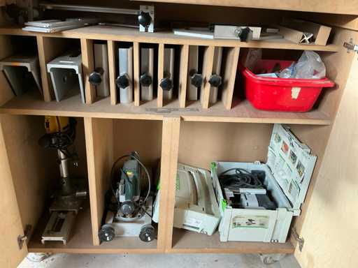 Format din 3x router, FESTSOOL DeWalt și METABO; Diverse matrițe de frezare, inclusiv pentru placa de blocare; Inclusiv cărucior mobil