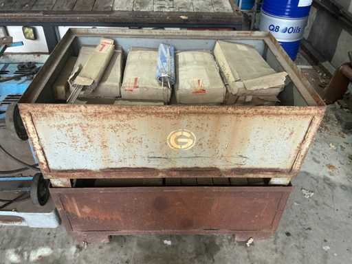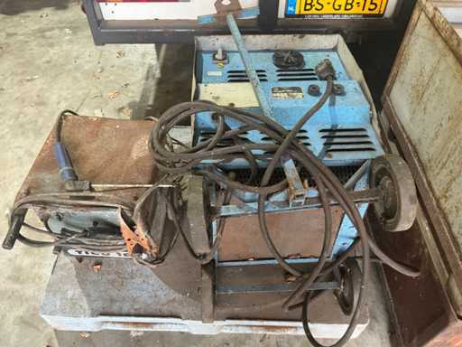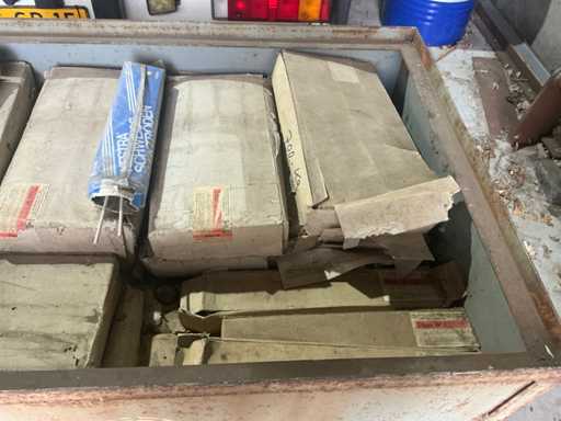 Format din mașină de sudat și 2x tavă plină cu electrozi de sudură.
