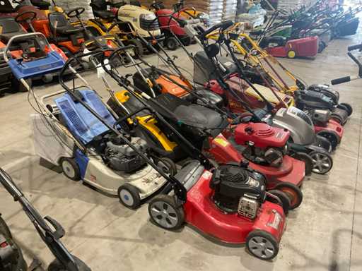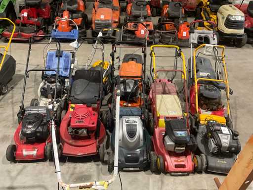 Diverse mărci de mașini de tuns iarba, inclusiv Stiga/Honda/Husqvarna/Wolf, parțial autopropulsate, parțial cu colecționare. Îngrijorează mașinile de schimb.
