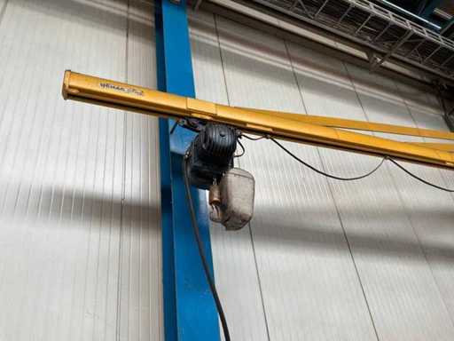 Braț de 6.000 mm înălțime cârlig LG 2.700 mm, cu ridicare electrică cu lanț Demag 500 kg. Un singur fir