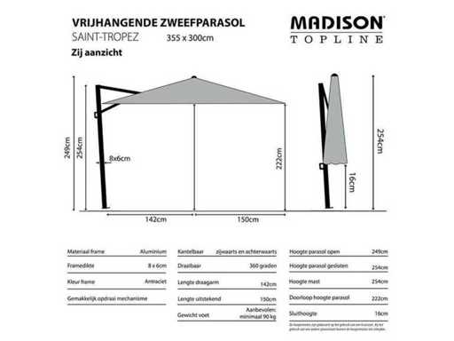 Madison - Saint Tropez - umbrelă suspendată (355x300cm) incluzând piciorul de umplutură (85kg) și protecție