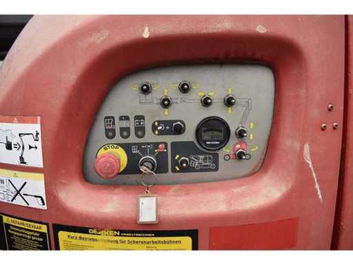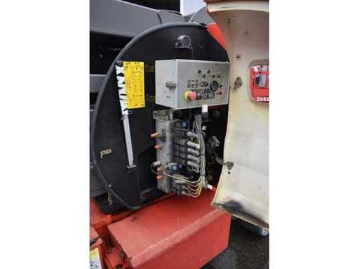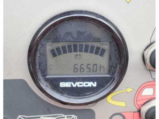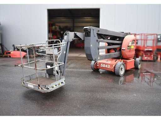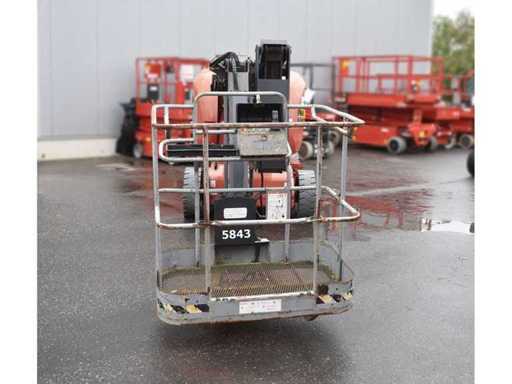 Nr. intern 5843, Presiune pe roți 36 kN, Gardă la sol 0,12 m, Capacitate de urcare 23%, Rază de rotație 175°, Cușcă de lucru rotativă, braț/unghi de rotație verticală 70°, Anvelope albe, Notă bateriile defecte, Problemă electrică, Controlul podelei și controlul cuștii în ordine, Condus fără funcție, Încărcare macaralei necesară, Costuri la cerere,