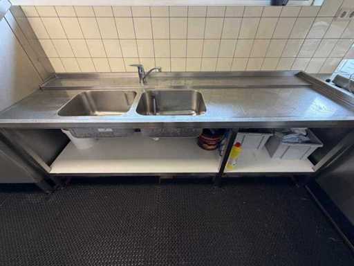 Masă de alimentare din oțel inoxidabil cu chiuvetă dublă