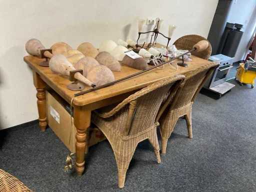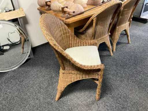 Masa de dining cu 4 scaune din nuiele