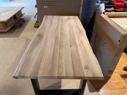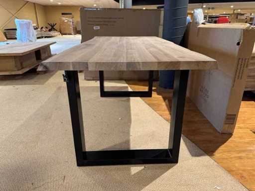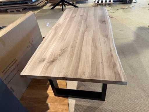Masa de dining - lemn masiv de stejar - picior în formă de U din metal negru - masă cu trunchi de copac
