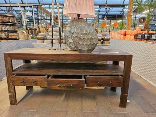 Masă din tec masiv cu 3 sertare - Farmec rustic