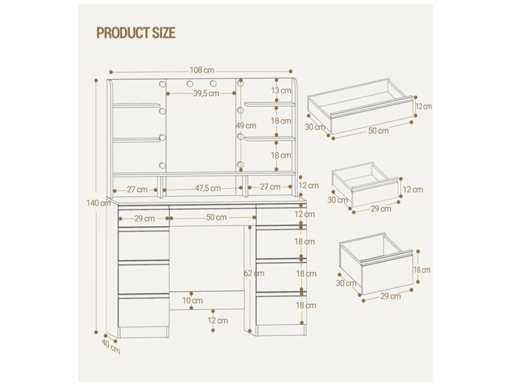 Afm. Înaltă 140 cm, lățime 108 cm, 40 cm adâncime.