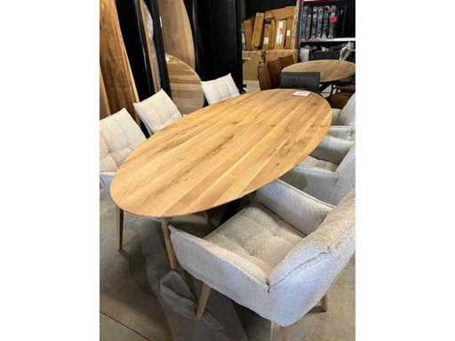 Masă ovală de sufragerie – Stejar masiv – Margine conică – Naturală – 280x110 cm - Picior metalic de păianjen