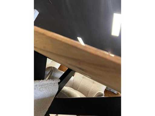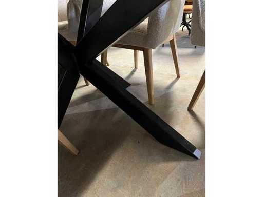 Acest lot se referă la o singură masă de sufragerie - Stejar masiv - Margine conică - Natural - Picior metalic de păianjen (5x10 cm) - 280x110 cm - 3 cm grosime - statut nou - Excluzând scaunele