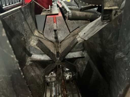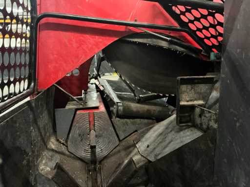 Echipat cu curea de evacuare de 400 cm lungime, despicător pentru lemne, curea de intrare, ferăstrău circular, cilindru de presiune, conexiune de alimentare de 63A, conexiune hidraulică.