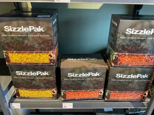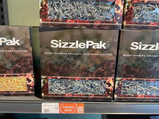 Conținut raft și palet, format din pachet Sizzle în diferite culori, polyprop, excluzând rafturi, inclusiv palet.