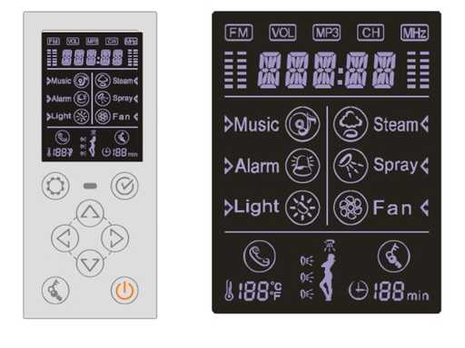 Echipat cu: scaun dublu acrilic (integrat din panoul spate acrilic). Robinete din alamă placate crom, duș de ploaie în tavan și panou de control digital cu ecran tactil.