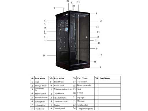 Cabina cu abur este realizată din acrilic de 7 mm, care este întărit cu poliester, un cadru din aluminiu și sticlă călită de 6 mm.