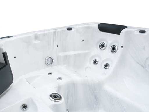 Bluetooth cu difuzoare, conversie din plastic fără întreținere, control Gecko din Canada (YJ-2 + IN. K300) + panou digital de control Gecko), încălzitor Gecko (2000 wați), 1 pompă de masaj cu 3 CP cu 2 trepte, 2 paturi și 3 scaune (3 locuri cu pernă), capac extra gros inclus (gri), total 35 de jeturi din oțel inoxidabil, jeturi suplimentare pentru masaj pentru gât și picioare, protecție împotriva înghețului, sistem de dezinfectare UV, diverse LED-uri de iluminat de-a lungul marginii apei + LED-uri în colțul exterior al spa-ului, Diverse butoane de control pentru a controla puterea și distribuția către jeturi, filtru de suprafață și curățare, izolație din spumă foarte groasă + izolație suplimentară pe pereții exteriori, drenaj al apei, inclusiv scară (gri), acest spa este plin de toate opțiunile posibile care pot fi comandate, acesta este un produs nou în ambalaje. Acest spa este ideal pentru locații unde ai doar o priză de 220v