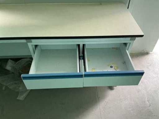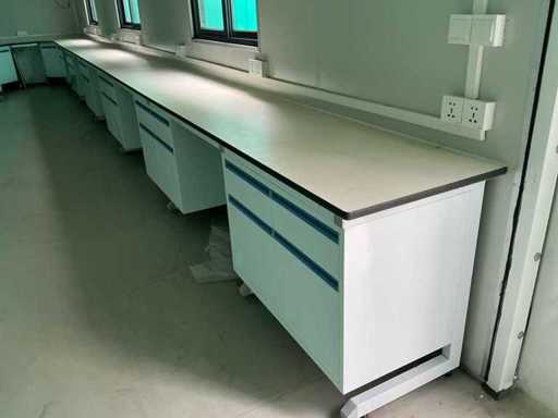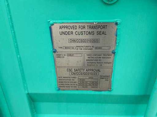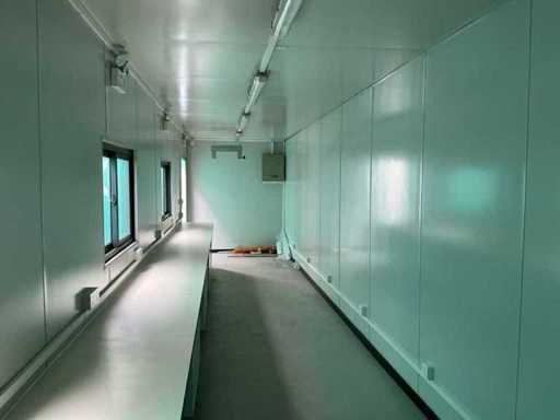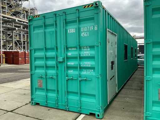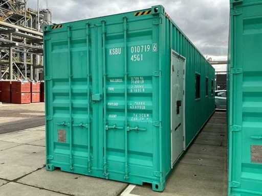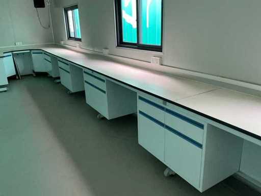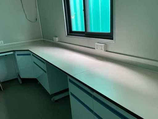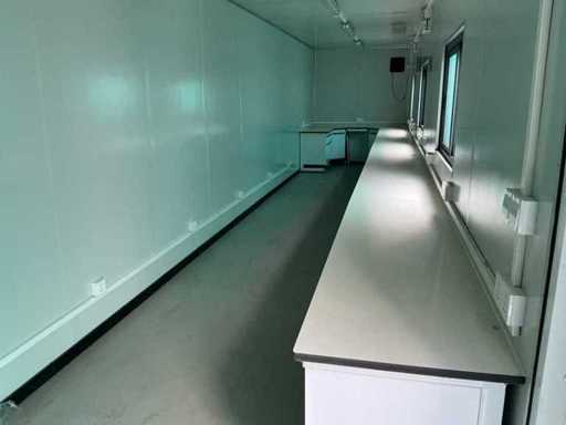 Echipat cu: acest container este amenajat ca un laborator general, caracteristici principale: • Tavan și pereți izolați: panouri sandwich din lână de piatră de 50 mm • Pardoseală: 2 mm acoperire de pardoseală PVC • Ușă de intrare sigură: 1200 x 2100 mm • 3 ferestre duble vitrate cu film rezistent la UV • Aer condiționat (2 CP, montat pe perete cu invertor) • Ventilator de evacuare (300 x 300 mm) • Mese de laborator (cadru din oțel, blat din rășină fenolică) — lungime totală mărită • Sistem electric complet: dulapul de contoare, iluminat, iluminat de urgență, detectoare de fum. Container nou High Cube (HQ) de 40 de picioare — niciodată folosit 12.032 mm (L) x 2.352 mm (W) x 2.698 mm (H), nou-nouț, convertit, dar niciodată folosit operațional