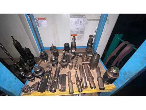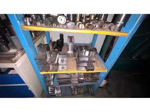 Unelte vizibile în fotografiile incluse cu mașina: suporturi pentru scule, elemente de prindere și accesorii.